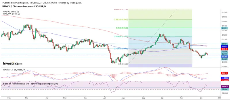 El USD/CHF, como siempre, nos da un giro contrario volviendo a caer debajo del soporte hasta los 0.8753.