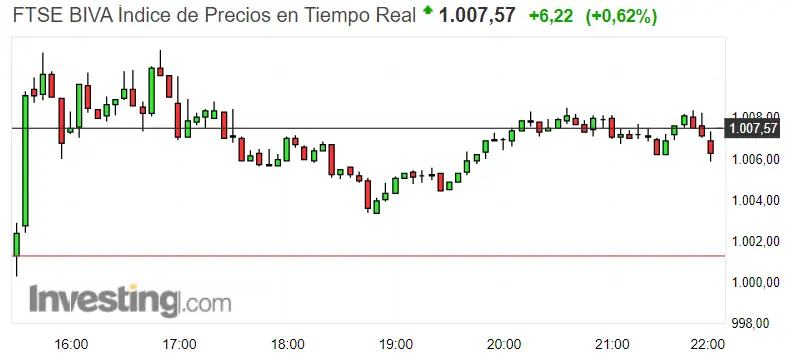 Gráfico del índice FTSE BIVA en un espacio de tiempo de siete días