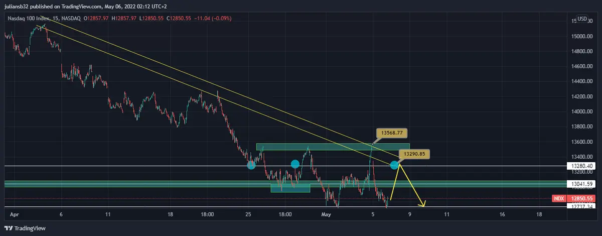 Grafico del Nasdaq 100 en temporalidad de 15 minutos fuente- tradingview