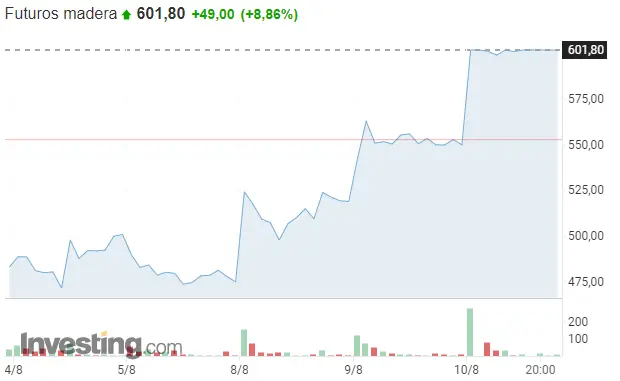 Precio de la madera en los últimos 7 días.