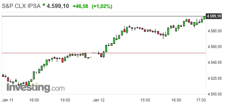 Gráfico del índice S&P CLX IPSA en un espacio de tiempo de un día