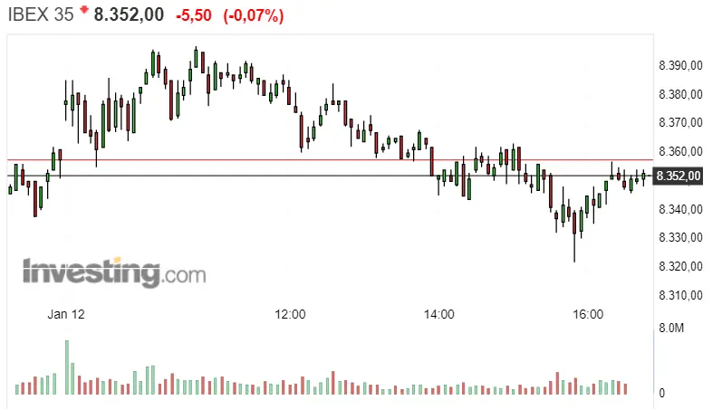 Gráfico del índice Ibex 35 en un espacio de tiempo de un día