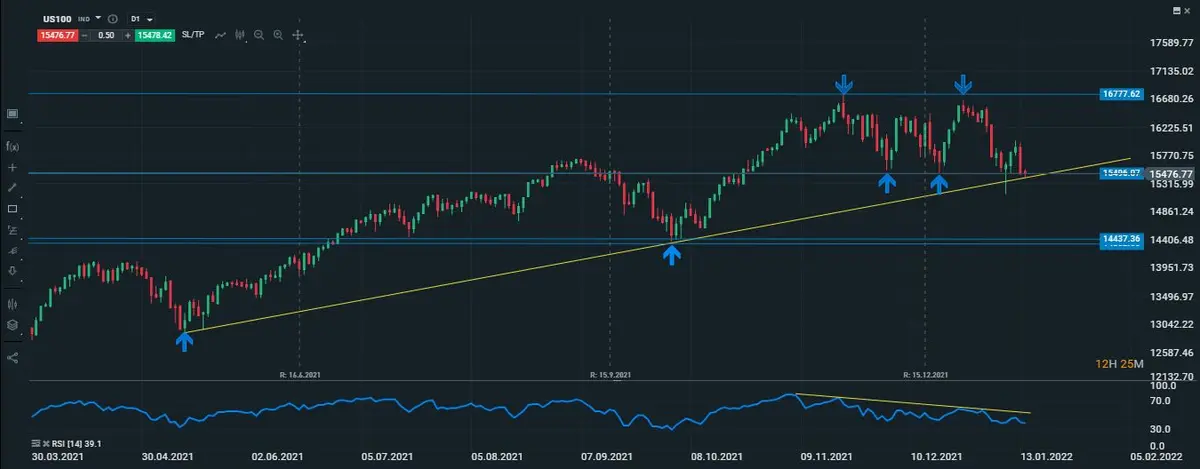 - Habrá que prestar mucha atención al Nasdaq, si llega a perder los suelos que se encuentran en los 15496 puntos, ahondaría su movimiento correctivo hasta sus siguientes suelos que se encuentran en los 14437 puntos. La noche no fue benévola para Tesla que cayó algo más del 7%, tras los comentarios de los miembros del FOMC.