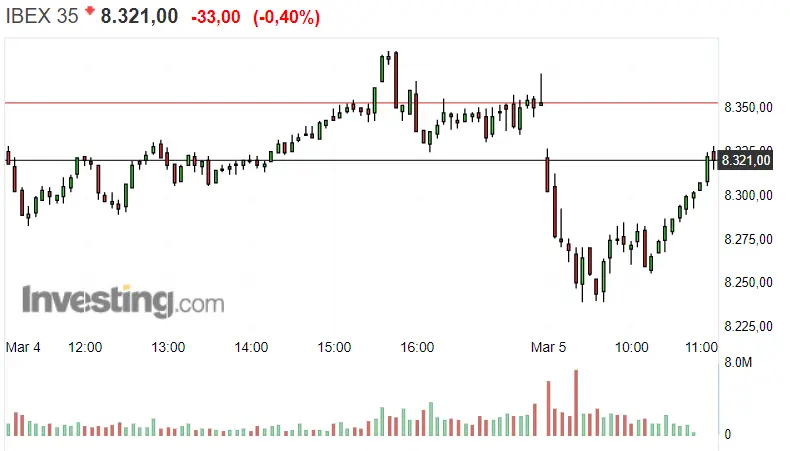 Gráfico del índice Ibex 35 en un espacio de tiempo de un día