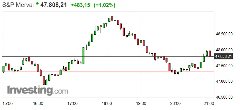 Gráfico del índice S&P Merval en un espacio de tiempo de un día