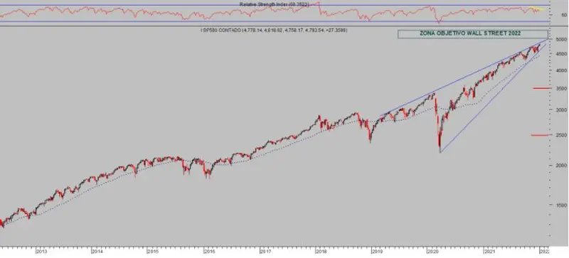 Gráfico actualizado del SP500, que muestra los objetivos de Wall Street para este año