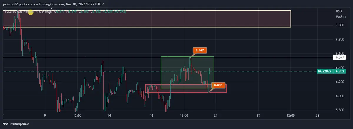 El precio del gas natural, al conocerse los bombardeos rusos, subió el precio hasta la zona de los 6.547 USD, para luego corregir y encontrar soporte en los 6.065 USD. El precio del gas natural en la sesión actual, se encuentra estable en la zona de los 6,401 USD, lo que representa una subida de +0,032 USD y una variación negativa de +0,50%.