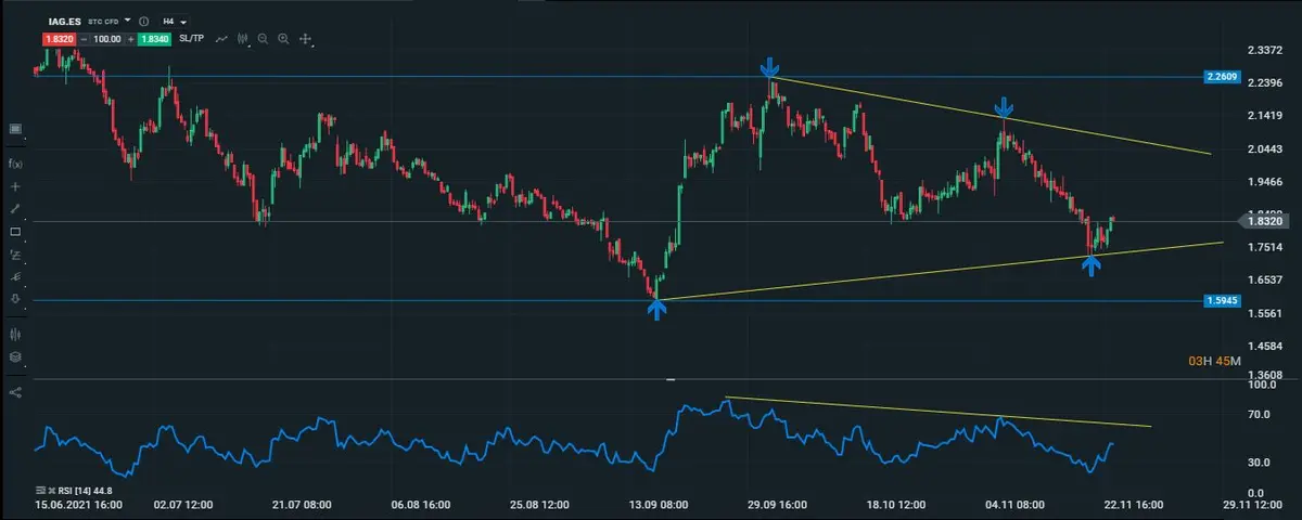 Gráfico actualizado de la compañía IAG en una temporalidad intradiaria