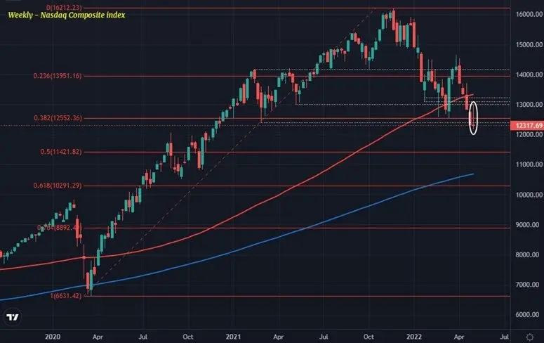 Este es un pinbar de aspecto feo que se perfila en el gráfico semanal del Nasdaq: