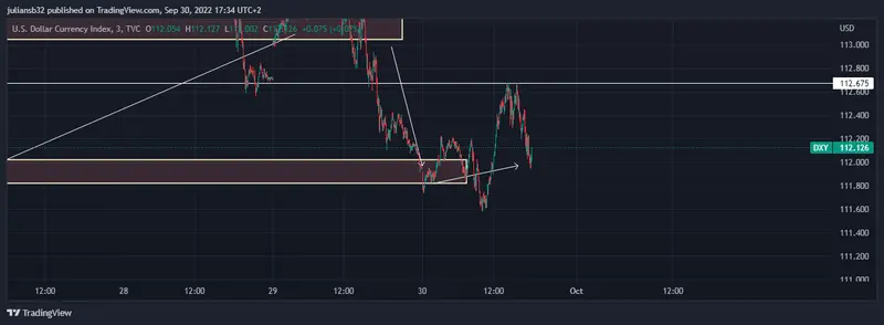 Grafico del DXY en temporalidad de 3 minutos fuente tradingview
