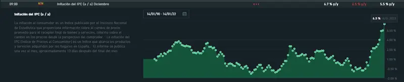 El día de hoy se dió a conocer el dato de inflación del IPC del mes de diciembre (6.7%), siendo el dato más alto que no se ha visto en los últimos 29 años, la media anual se queda en 3.1%. siendo la más alta de los últimos diez años.