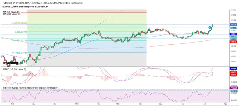 La siguiente resistencia se encuentra en el 38.20% de Fibonacci en los 1.1280.