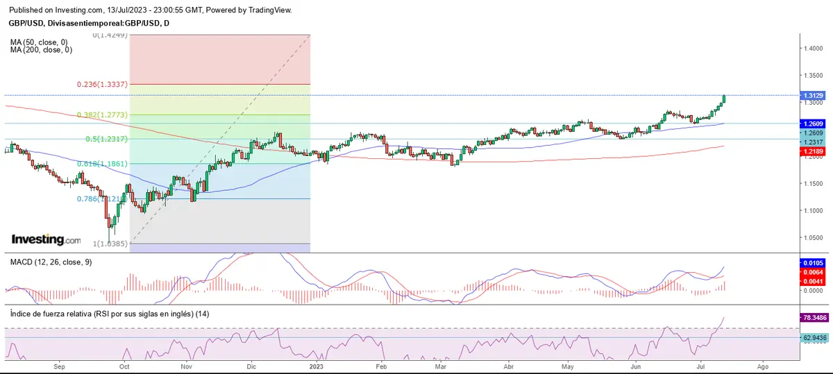 La resistencia a alcanzar se encuentra en el 23.60% de Fibonacci en los 1.3337.