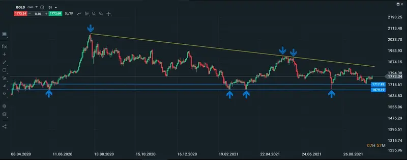 Si por el contrario el precio del oro supera los techos antes comentados, podríamos estar ante claro cambio de tendencia, en el cuál esperaríamos que el precio del oro lo haga muy bien, en sus próximas seciones.