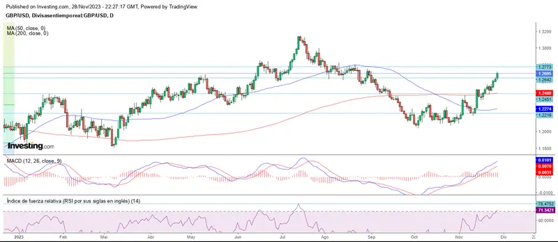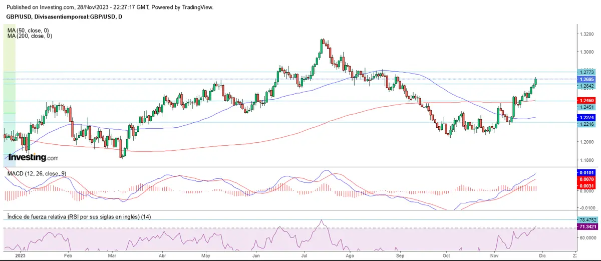 El cable GBP/USD también continúa con la tendencia alcista, superando la resistencia marcada, y alcanza los 1.2695.