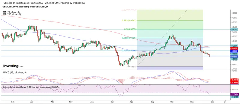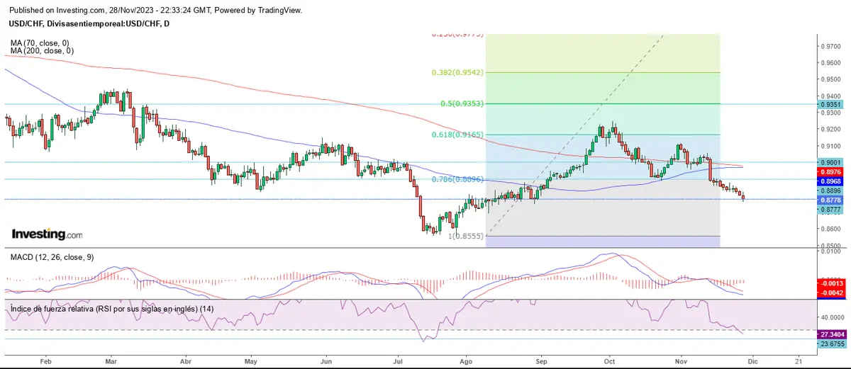 El USD/CHF nos muestra la otra cara de la moneda al alcanzar el soporte en los 0.8778.