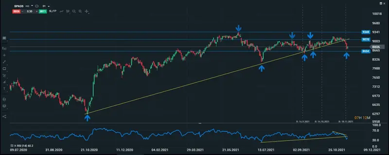 Gráfico actualizado del índice español en una temporalidad diaria