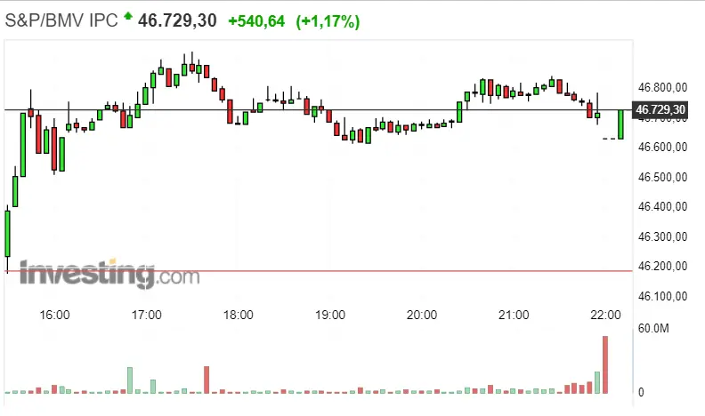Gráfico del índice S&P/BMV IPC en un espacio de tiempo de un día