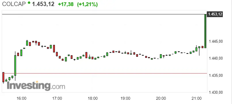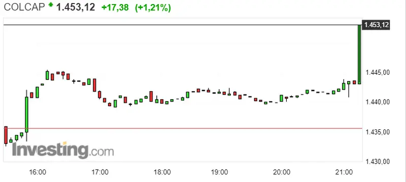 Gráfico del índice COLCAP en un espacio de tiempo de un día