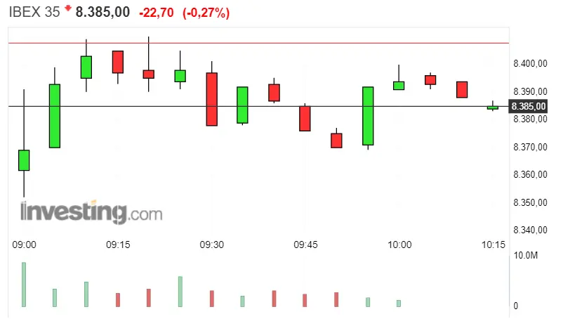 Gráfico del índice Ibex 35 en un espacio de tiempo de un día
