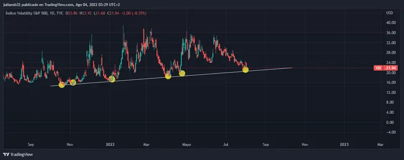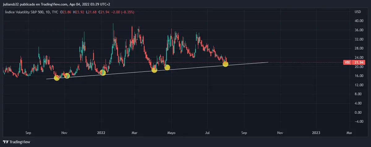Índice VIX en temporalidad diario fuente tradingview