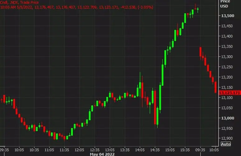 En algún momento de hoy, los compradores intervendrán, pero los rendimientos iniciales son bajos. El Nasdaq ha vuelto a los niveles anteriores al FOMC.