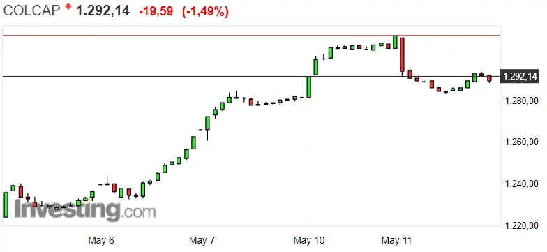 Gráfico del índice COLCAP en un espacio de tiempo de un día
