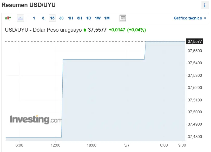 El tipo de cambio, para el par de divisas dólar pesos uruguayos (USD/UYU) por su parte comienza la jornada en verde con un valor de 37,5577 pesos uruguayos