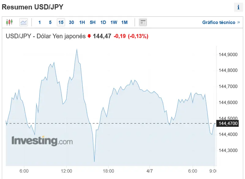 El par de divisas (USD/JPY) ha experimentado una caida y se situa en estos momentos en los 144,47 yenes.