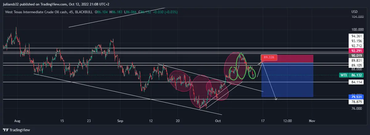 Gráfico del petróleo en temporalidad de 45 minutos fuente tradingview