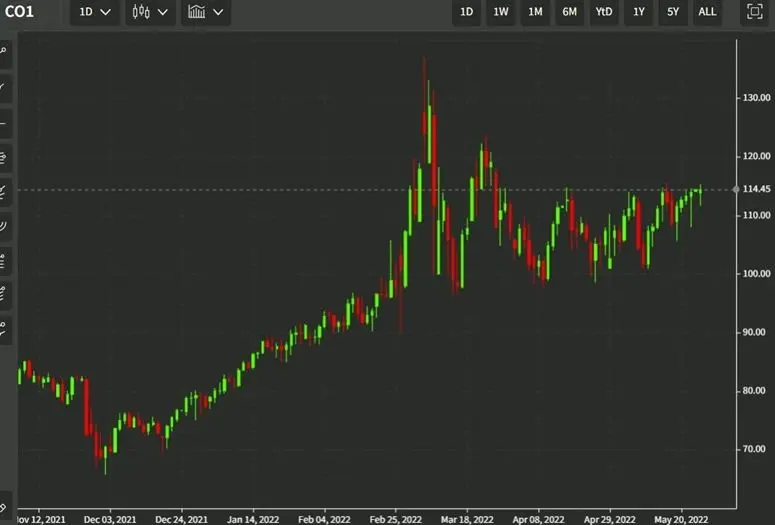 - espera que el precio del petróleo Brent continúe fluctuando entre $ 100 y 115 por barril en el trimestre actual