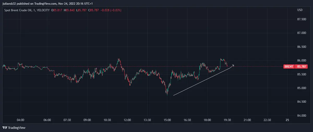 En lo que se lleva de este mes, el precio del petróleo de referencia Brent ha caído más de un 10%, la demanda mundial está pesando en los precios, y la OPEP posiblemente recorte producción para nivelar los precios. En la sesión actual el precio del petróleo Brent se ubica en la zona de los 85.10 USD, lo que representa una variación positiva en el día de 0.37%, en lo que va de semana la variación es de -5.52%.