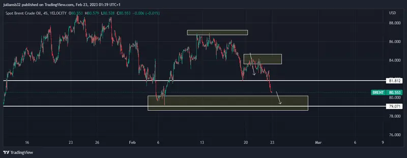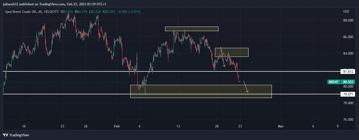 El precio del petróleo Brent parecía recuperarse a inicios de febrero, pero a medida que se agudizan los mercados por la política monetaria, el Brent no pudo sostenerse cerca de los 90 USD y ahora lucha en los 80 dólares. El precio se ubica en la zona de los 80,47 USD, lo que representa una caída en la última sesión de -2,58 USD y una variación negativa de -3,11%. Los próximos niveles a vigilar son los 79 USD.