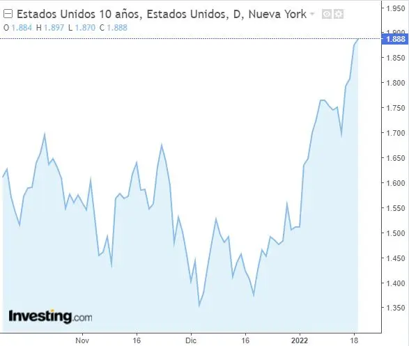 El bono americano a diez años el día de hoy su rentabilidad se encuentra muy cerca de llegar al 2%