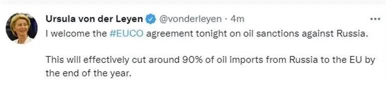von der Leyen de la UE sobre el acuerdo de la UE para cortar el 90% del petróleo ruso a la UE