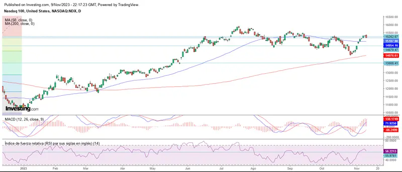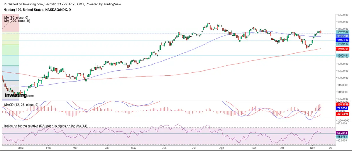 El Nasdaq alcanzó la resistencia el jueves, pero cerró por debajo de la misma en los 15.262 puntos.