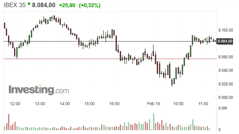 Tal y como adelantamos en el título, el índice español Ibex 35 se ve afectado hoy por la balanza comercial de España tras lo cual se profundiza en una escalada que deja las cotizaciones del momento actual en unos 8084 puntos, es decir, la subida de la que hemos sido testigos ha sido la de unos 25.90 puntos, dejando el Ibex 35 en verde; se trata de un ascenso del 0.32%. Si nos centramos en sus niveles de resistencia y soporte, en tal orden, veremos el nivel de resistencia en 8092.92 puntos y el nivel de soporte en 8016.55 puntos.