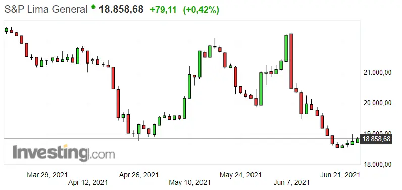 Como podemos imaginar por el título y podemos comprobar en el gráfico de abajo, el índice peruano se encuentra en un ascenso, dejando las cotizaciones del momento actual en 18858.68 puntos. Las subidas son del 0.42%, en concreto de 79.11 puntos. Si buscamos el nivel de soporte del índice S&P Lima General, lo veremos en 18572.78 puntos, mientras que el nivel de resistencia lo podemos encontrar en 23276.93 puntos. ¿Qué es lo que esperas del índice peruano?