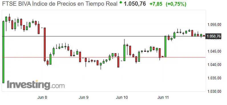 Gráfico del índice FTSE BIVA en un espacio de tiempo de siete días