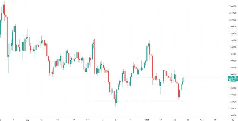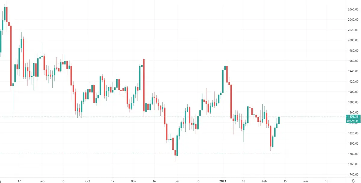 El gráfico del precio de oro (10.02.2021) Fondo: tradingview.com