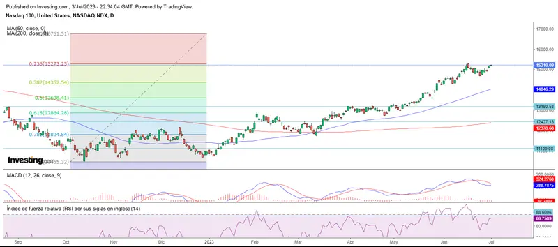Misma situación para el Nasdaq que no avanza más allá de los 15.210 puntos.