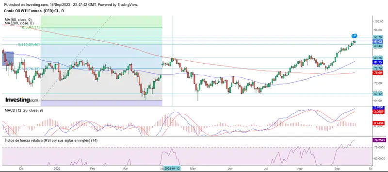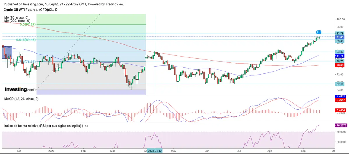 El crudo WTI no pierde de vista su tendencia alcista y alcanza en la apertura del martes los 91.01 dólares.