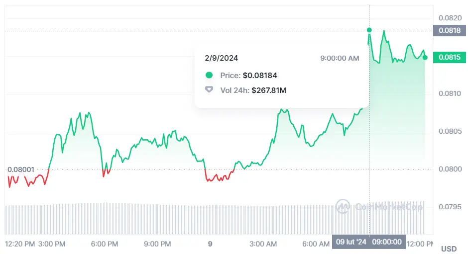 Gráfico de las cotizaciones de la criptomoneda Dogecoin (DOGE) en un espacio de tiempo de un día