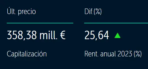 En estos momentos la compañia cuenta con un valor de capitalización de 358,38 millones de euros.