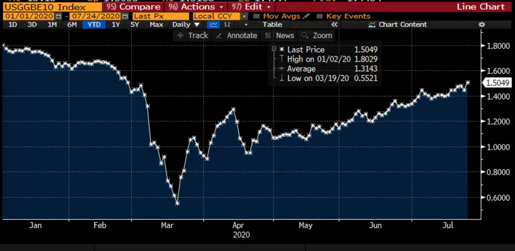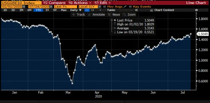 Expectativa de inflación de EEUU a 10 años – Fuente: Bloomberg