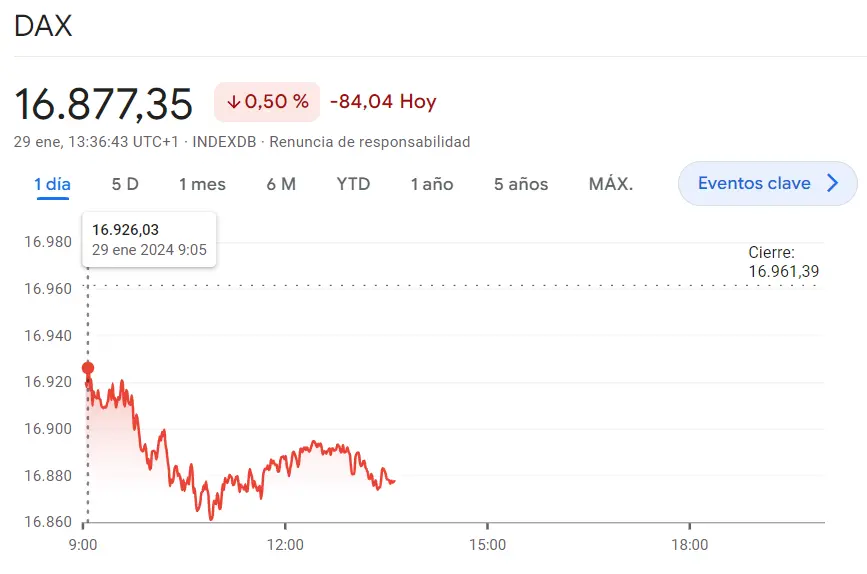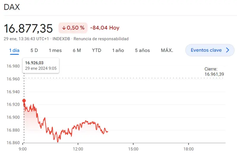 Gráfico de las cotizaciones del índice Dax 30 en un espacio de tiempo de un día