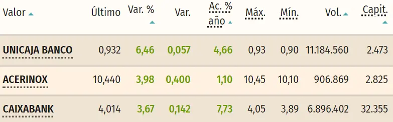 Precio objetivo Acerinox en duda con cotización Unicaja por un 6.34% ¿Qué bancos componen CaixaBank? Subidas del 3.54%