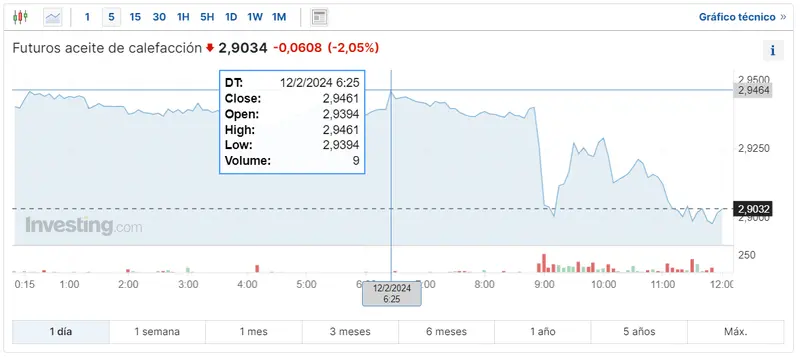 Gráfico de las cotizaciones del aceite de calefacción en un espacio de tiempo de un día