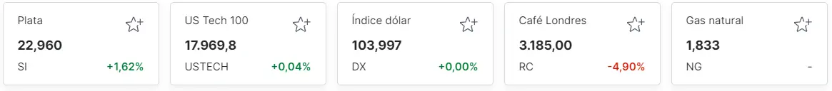 Gráfico de las cotizaciones de los activos más volátiles del mercado de las materias primas