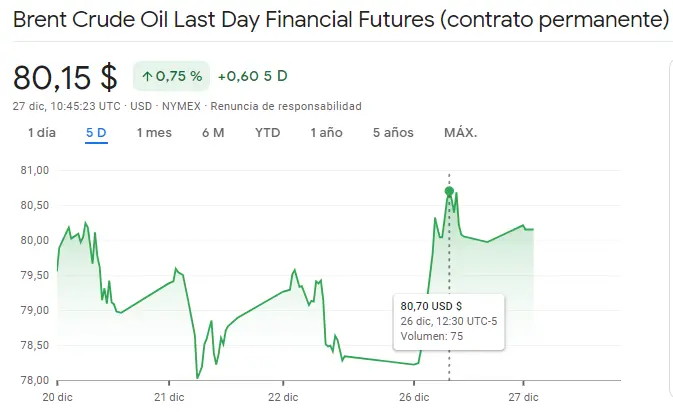 Los inversores confían en muchas más subidas en el precio del petróleo crudo Brent, subiendo enn momentos puntuales hacia cotizaciones muy fuertes en contraste con las cotizaciones más flojas del petróleo crudo Brent. Entre las cotizaciones más relavantes y las mencionadas, nos interesa mencionar tanto las cotizaciones máximas de unos 80.7 dólares como las cotizaciones mínimas de apenas unos 78 dólares por el petróleo crudo. El momento actual está arrasando con unas cotizaciones de unos 80.15 dólares por petróleo crudo, elevándos unos 0.6 dólares con subidas de un 0.75%.